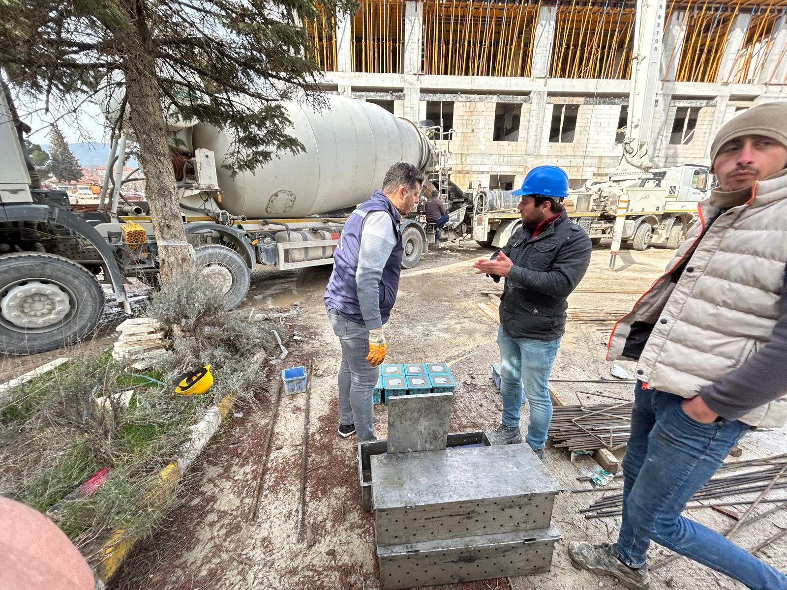 İl Müdürlüğümüz denetimi altında yapımı devam eden Gölhisar Devlet Hastanesi Ek Bina Yapım İşinde Piyasa Gözetimi ve Denetimi faaliyetleri kapsamında beton kalite kontrolü amacıyla teknik elemanlarımız tarafından numuneler alınmıştır.